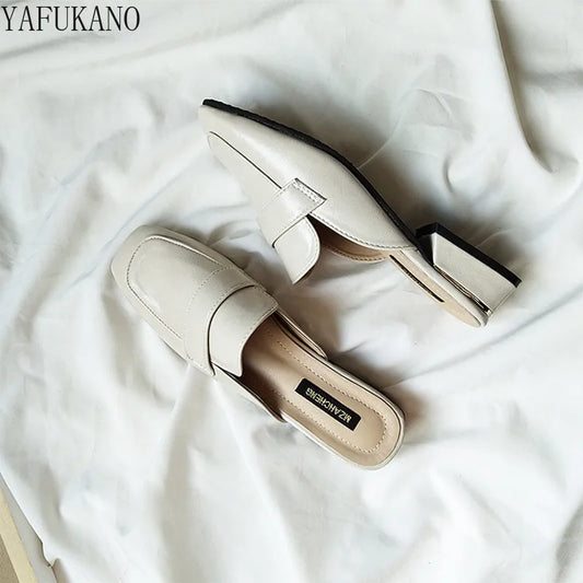 Elegant Women’s Low-Heel Mules – Chic & Comfortable Square-Toe Slippers